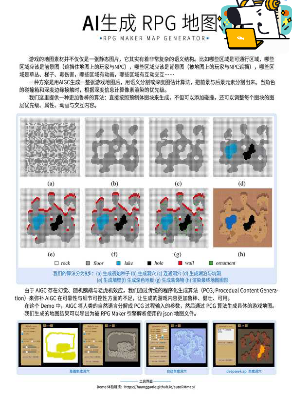 对于RPG游戏中使用高频的dungeon迷宫地图制作了自动生成工具。未来可以扩展到大地图、城镇、自然景观、室内等地图的自动生成。另外,可以引入基于叙事或拓扑图的整个JRPG游戏地图的生成方法。